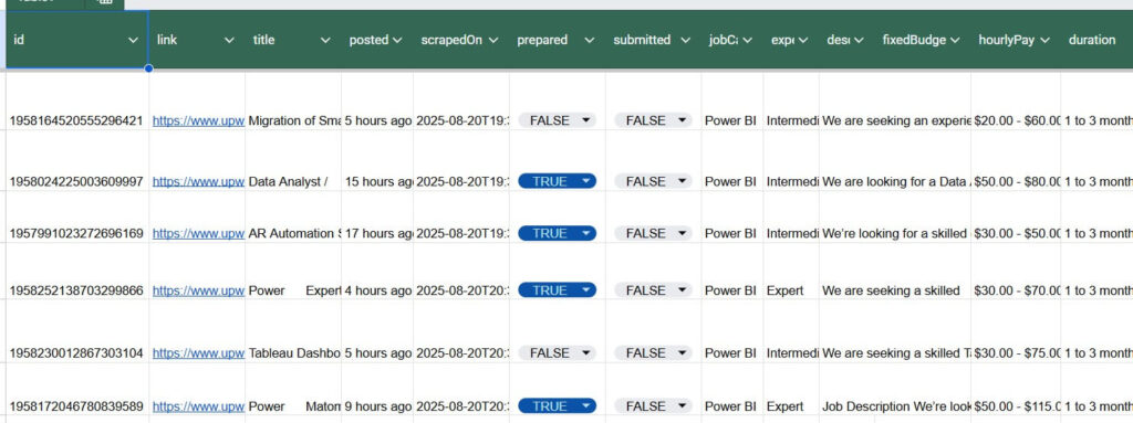 - Scrapes job listings by keyword using the Apify API and eliminates duplicates from previous sessions.